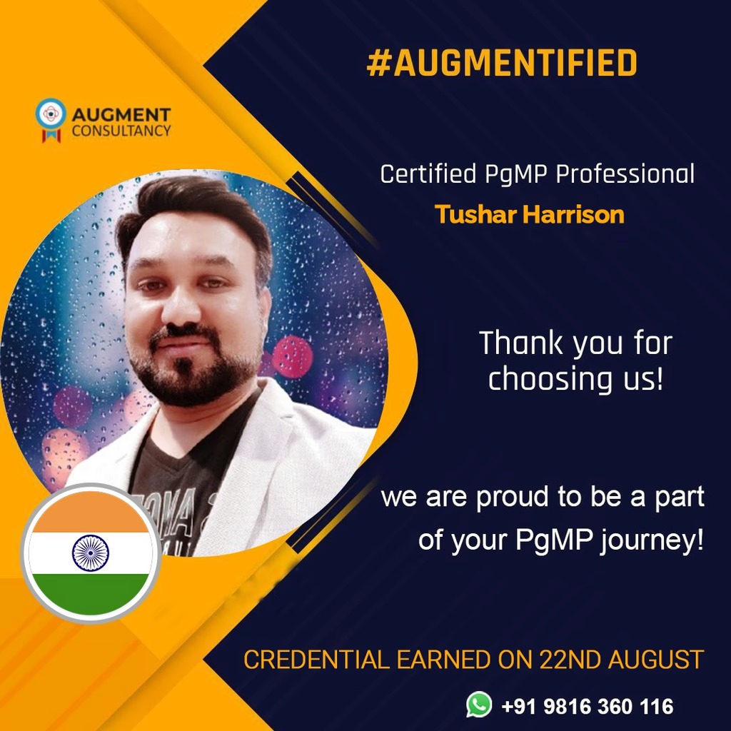 I'd like to extend my gratitude to Sanjeev Kumar PfMP®, PgMP®, PMP®. It wouldn't have been possible without your support. You're an incredible trainer. I formally endorse you to all my connections. If anyone wants to pursue this, they must connect with you.