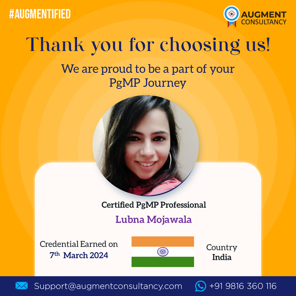 • Our training program typically takes 2 to 4 months for professionals to achieve PgMP certification. This timeline is based on our 4-stage mentoring approach, which ensures a structured and effective learning journey. The exact duration may vary depending on individual learning pace and engagement.